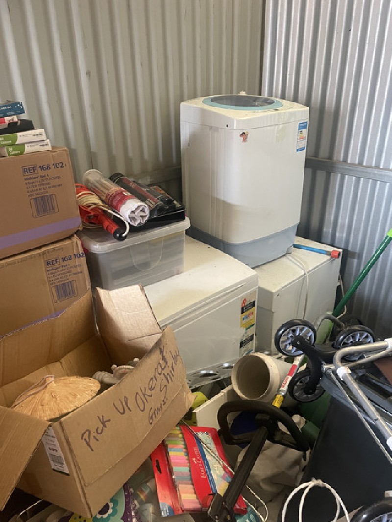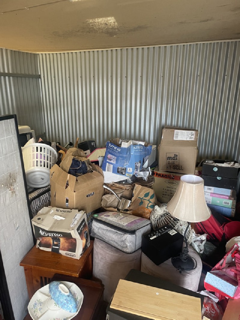 Unit containing a wide range of items some new some used. Including furniture, appliances, tool , clothes, dvdv, boxes of hand sanitiser, artworks and more!