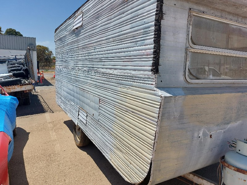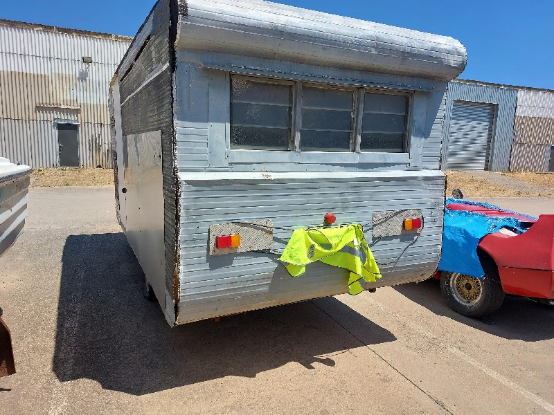 This caravan is a shell only nothing inside besides an awning and not sure what shape that is in. Locked cannot access within without breaking lock.
