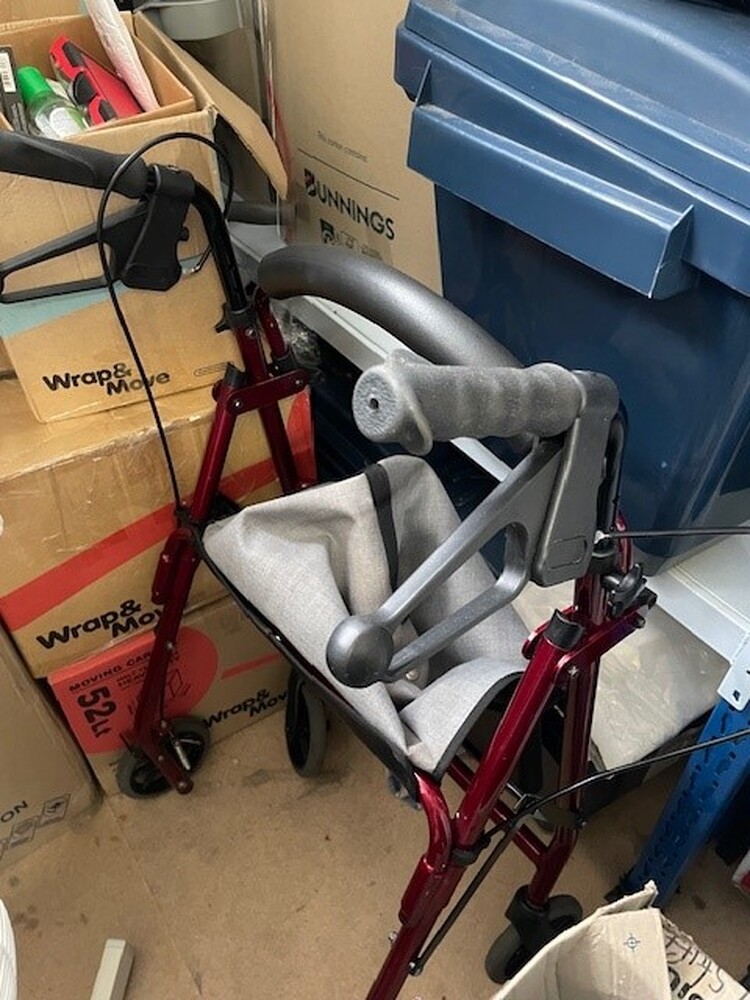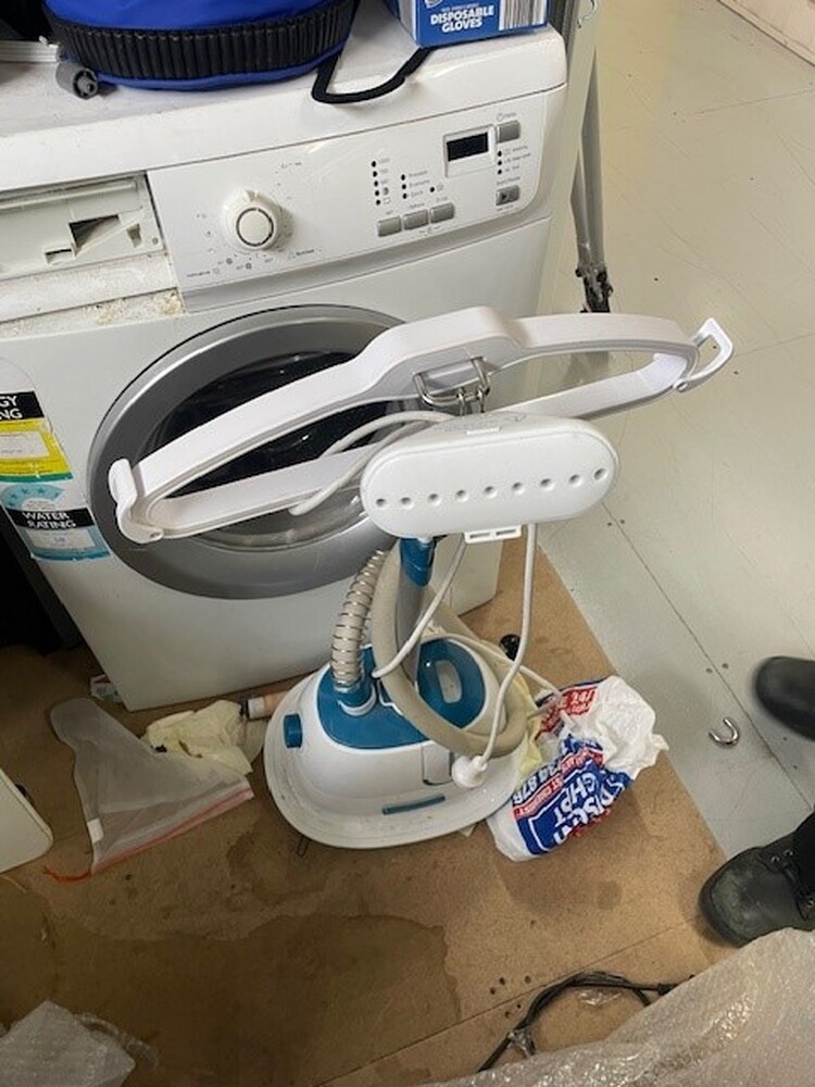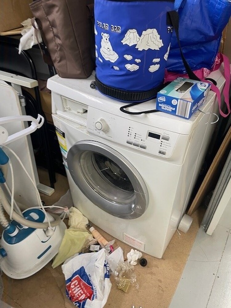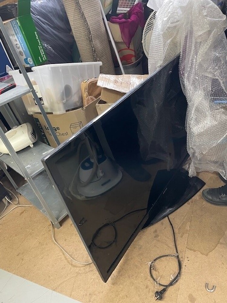 contents as packed by storer including boxed Ozito drill, flat screen TV, small computer desk, walker, small steam cleaner, single bed mattress & base, rug, portable heater, jacket, washing machine and assorted boxed goods misc