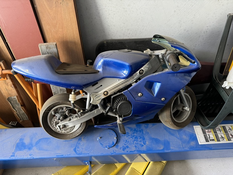 SCA 1250kg engine crane, various car parts as per photos, car hoist looks to be Tufflift brand, 2 Castrol 200l drums, mini motorbike, various mechanical tools in original cases and loose, various furniture items and other various goods - refer to photos