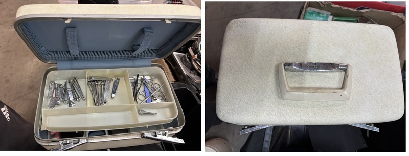 19. Small white Samsonite Vintage Case with Scissors & Clippers inside
