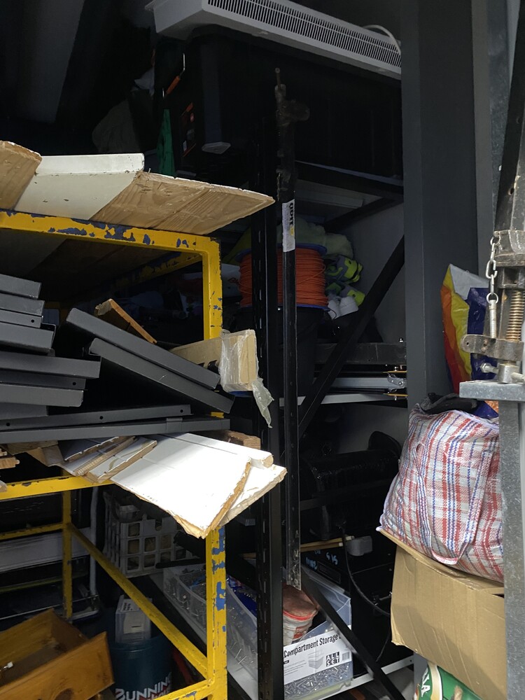 PLEASE NOTE: YELLOW AND BLUE TROLLEY AND SHELVING RACK (SHEVLING ONLY) IS EXCLUDED FROM FINAL SALE.