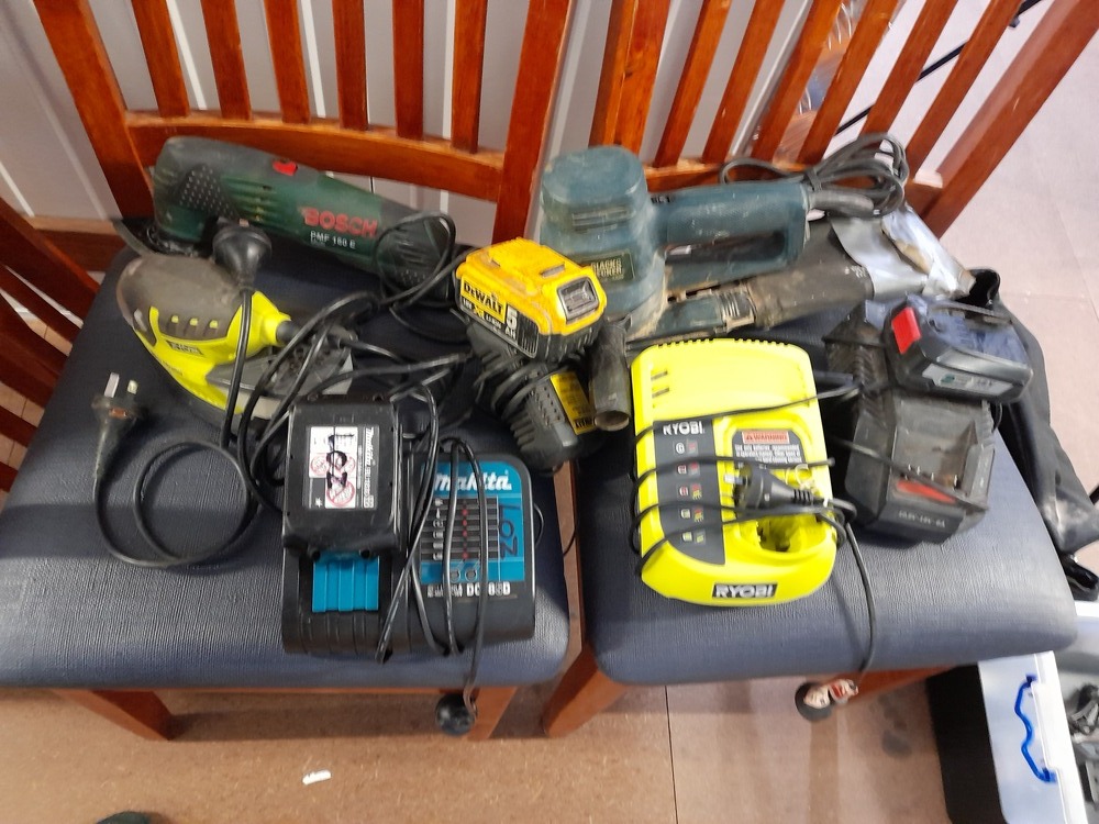 Brands such as Ryobi, Black and Decker, Metabo, Makita, DeWalt, Ozito.