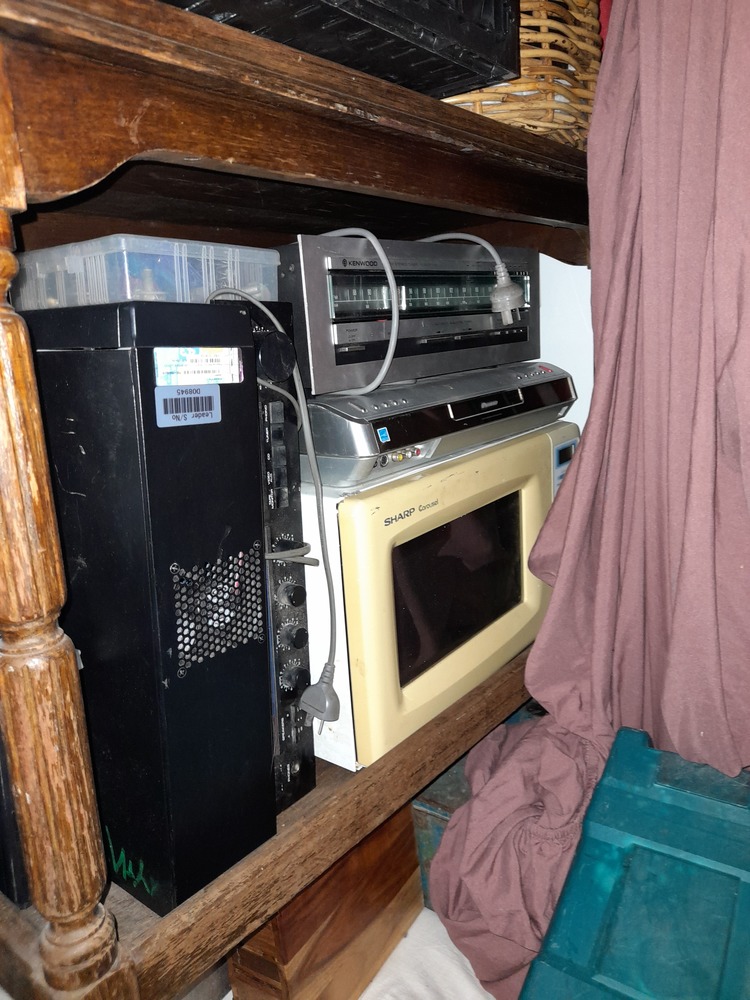 Moving on to furniture - we have dining table and chairs, bedside tables, side table, full size fridge, bar fridge, washer or dryer, pedestal fan, lamps, rugs, assorted kitchen wares, mop bucket. Clock radio, microwave, DVD player, sandwich maker, computer monitor, fish tank and a Fujifilm digital camera and bag with much more to discover.