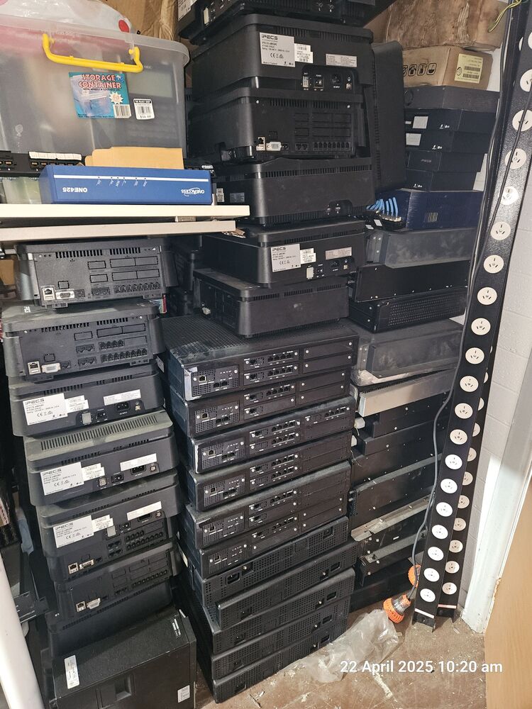 Goods belonged to IT installer. Goods are sold in as is condition, no warranty, no returns. Goods need to be removed within 3 days.