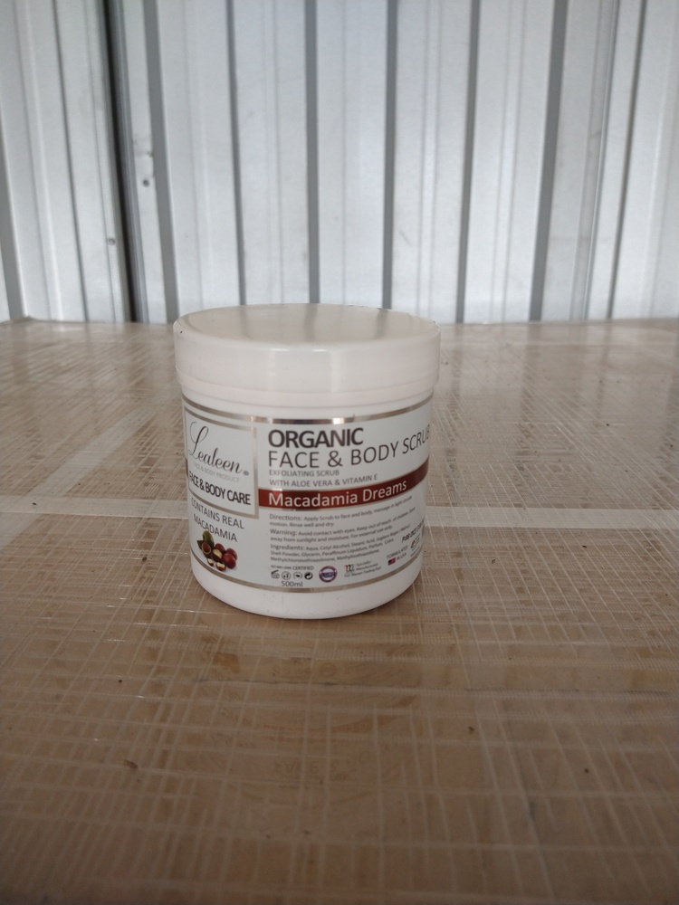 34x boxes (12 tubs per box) face and body scrub various flavours