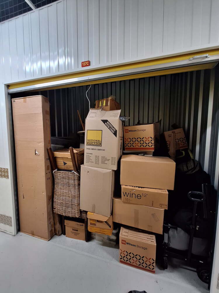 Its a very full unit. Full of boxes and bags and the furniture. Tried to take the photos as best we could in the spaces we had. Bags were unopened and boxes we could open we did, some more are further at the back and bottom unopened.