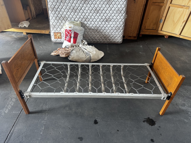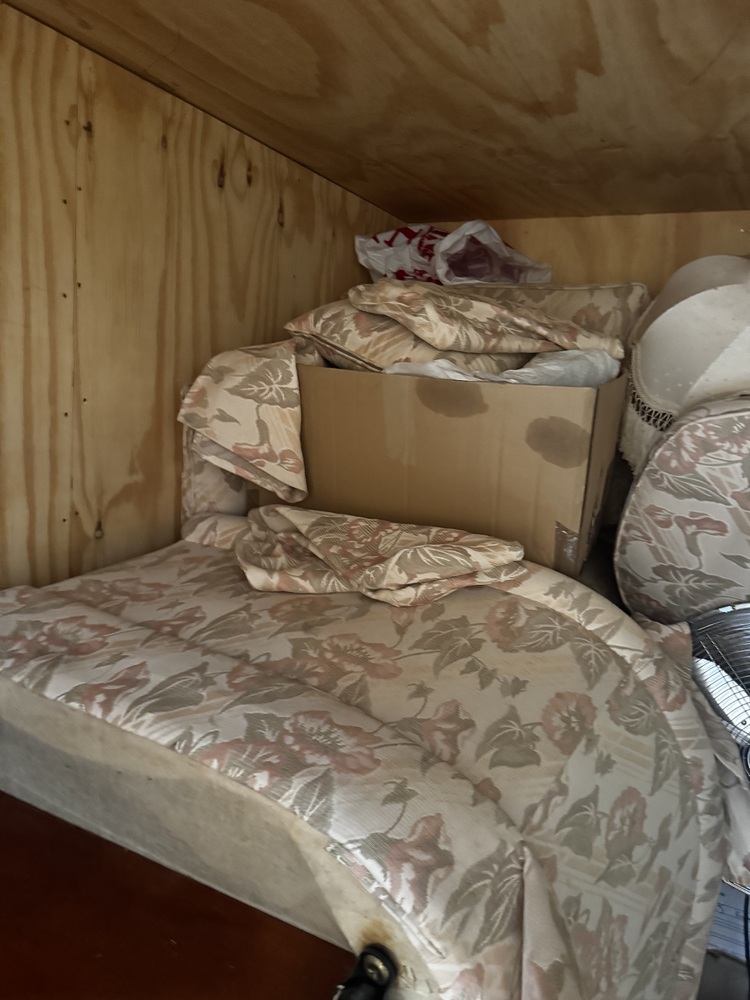 Single bed , sofa , single swivel chair , a lot of boxes of Books