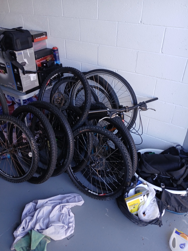As seen multiple bike frames and wheels/tyres etc.