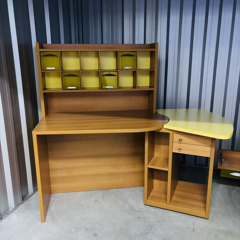 Cilek Children bedroom suite consisting of desk with swivel computer table and single bed frame with built in side table, as per photos.