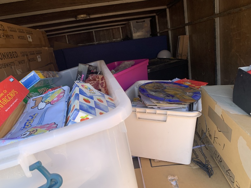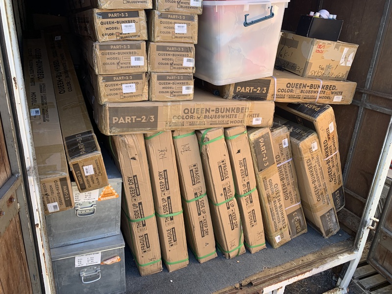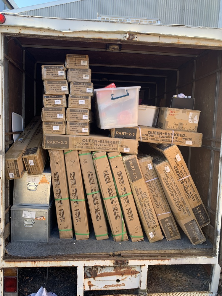 NOTE: truck box contents are up to blue partitions only, approximately half a truck box full.