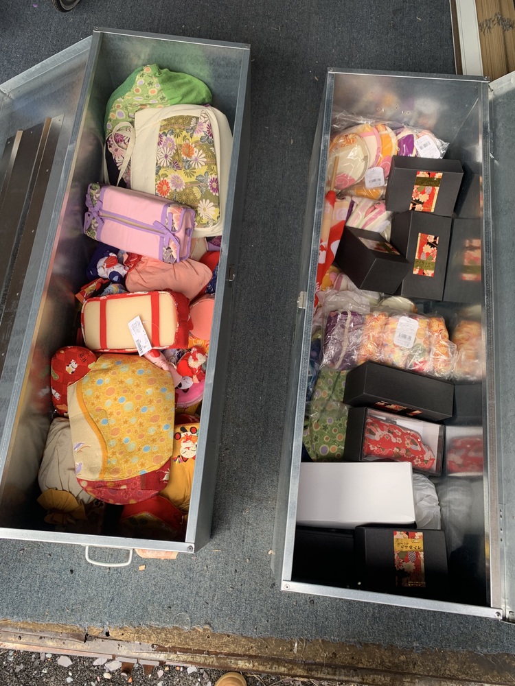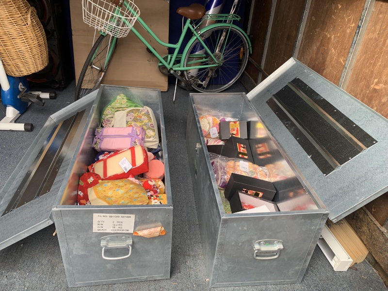 2x galvanised steel tool boxes 115cmx38cmx38cm packed with over 150 NEW Japanese purses and giftware!!!