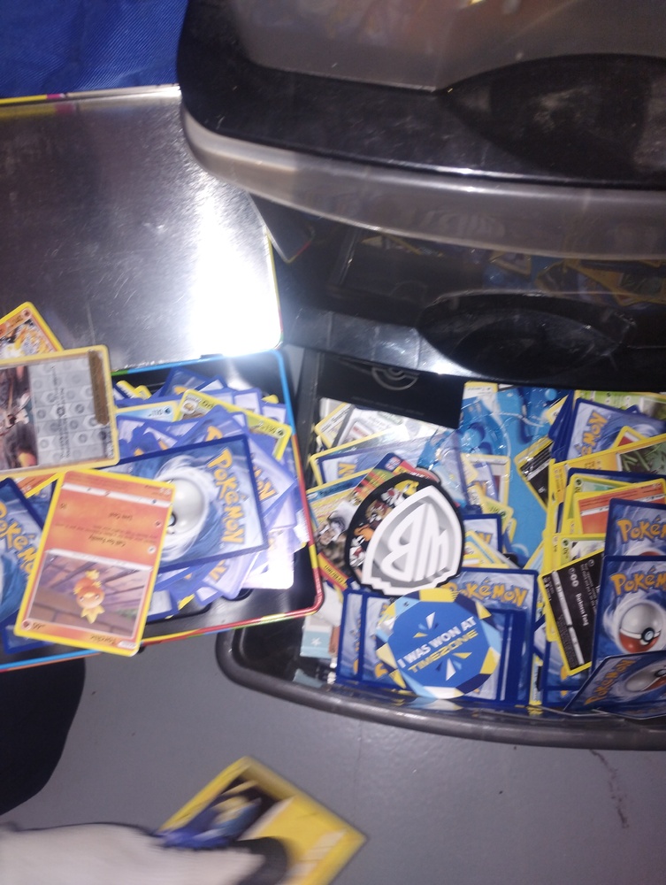 3-drawer tub w/ assorted pokemon/NBA cards