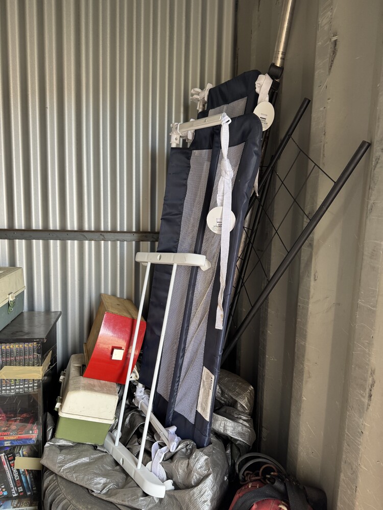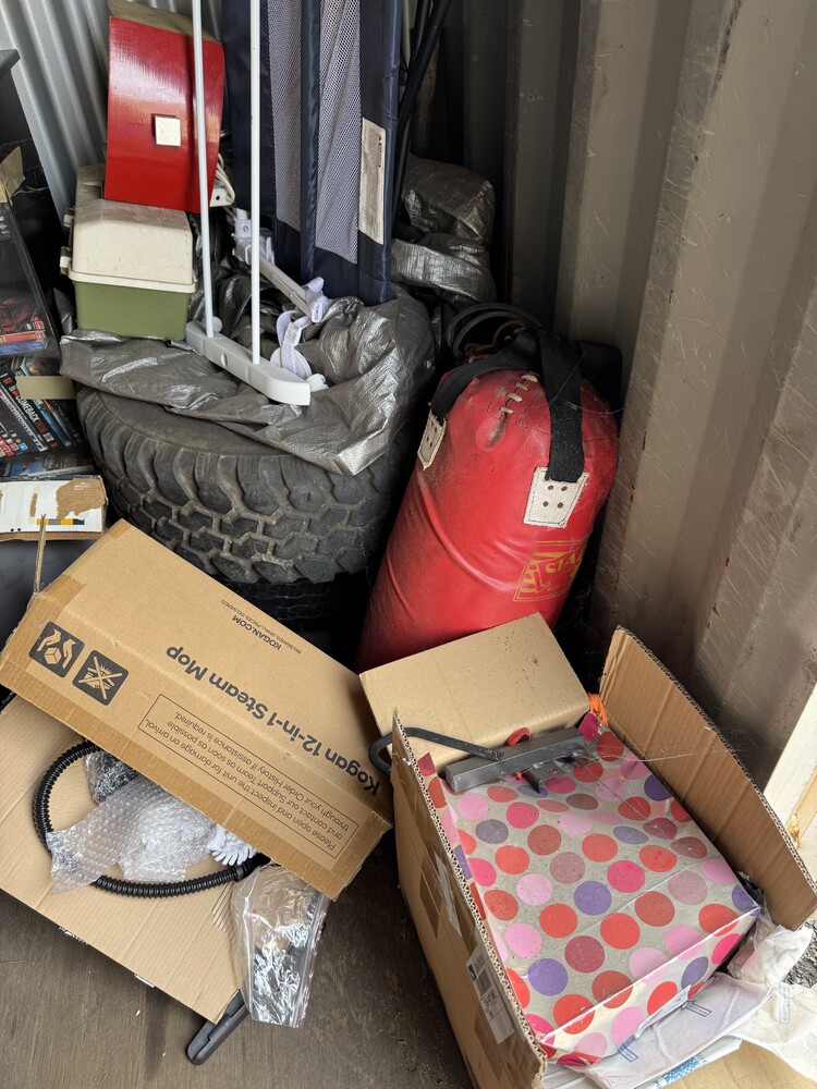 Household goods and furniture including desk, fridge, freezer, garden hose, speakers, tv, mirror, portacot, punching bag, etc