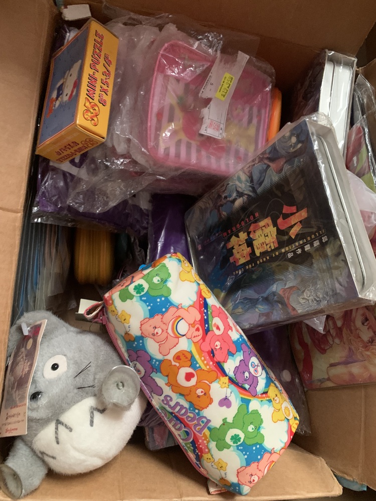 Approximately 30x boxes of brand new Japanese gift wear including hundreds of thongs individually wrapped , purses, snoopy and hello kitty vintage stock , Jackie Chan mugs and tins and much more!!! (Approximately 10,000+ pieces)