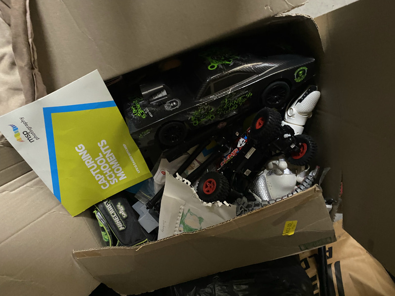 Television, 2 Fridges, Xbox One S Unit, 2 x Scooters, Helmet, Blower, Assorted Bags of Linen / clothing / Household items, Headphones, Box of assorted toys, Christmas Tree, Ironing Board, Drying Rack