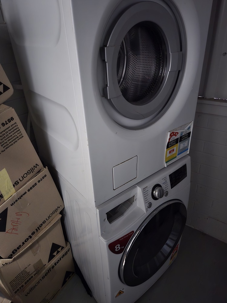 Here we have a unit with washer and dryer and a large very heavy 3 seater leather couch.