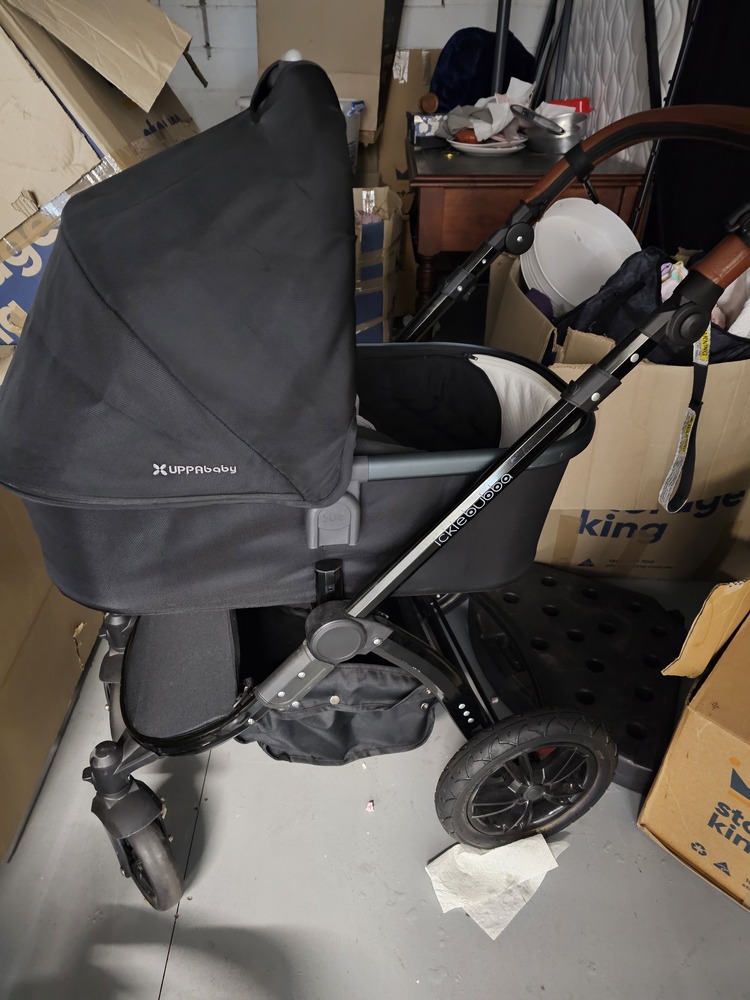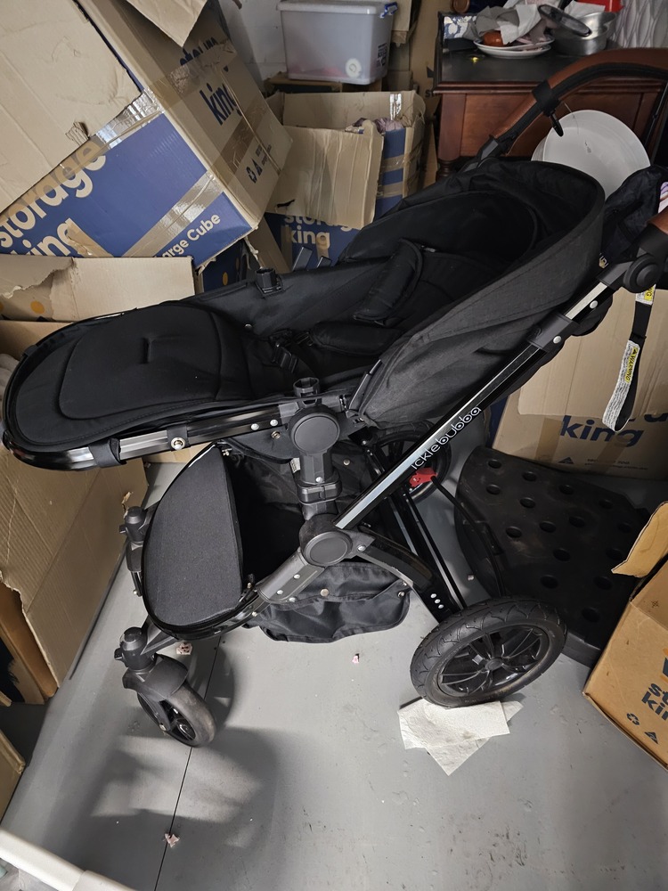 IckleBubba Stroller ( as new ) , UPPAbaby Basinet, Large Glass Table Top, 6 x Cream Dining Chairs, Leather topped office desk, Glass Curved Coffee Table, King Ensemble Bed, Outdoor Umbrella, Baby Highchair, Baby Table Top Chair, Clothing, Kitchenware, Mirrors, Poster