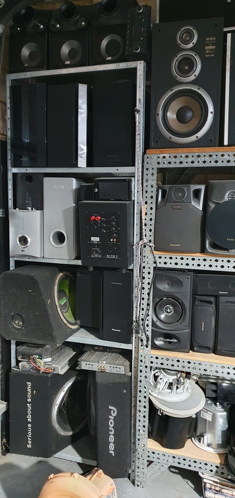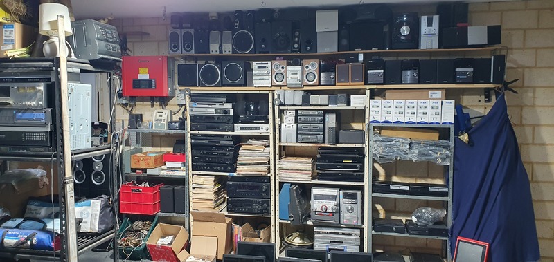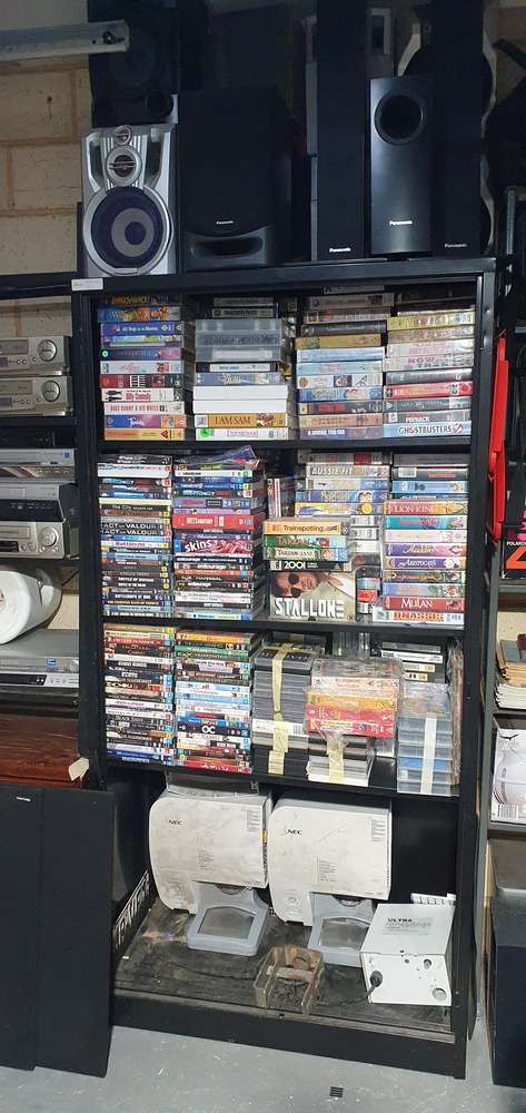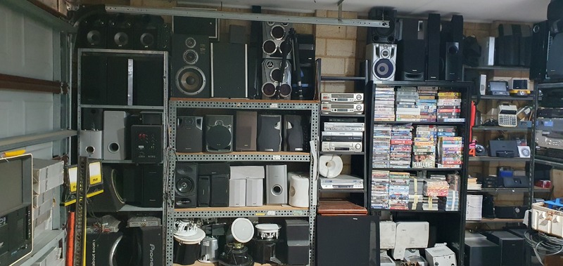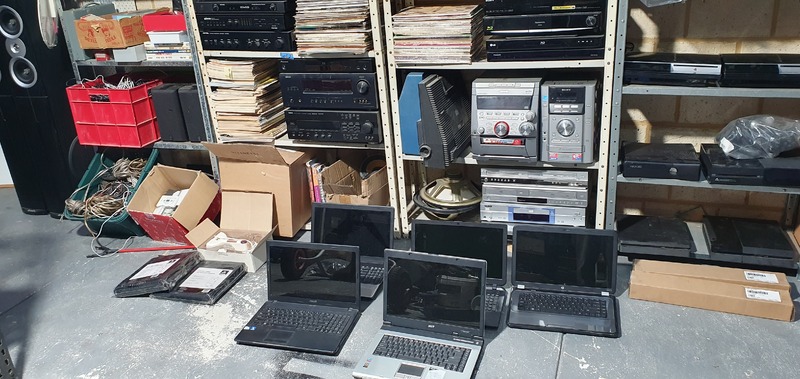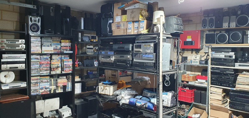 51x VHS, DVD, HDD, CD players, cassette players, record player, tuner, amplifiers, VHS-DVD player/recorders – not tested
