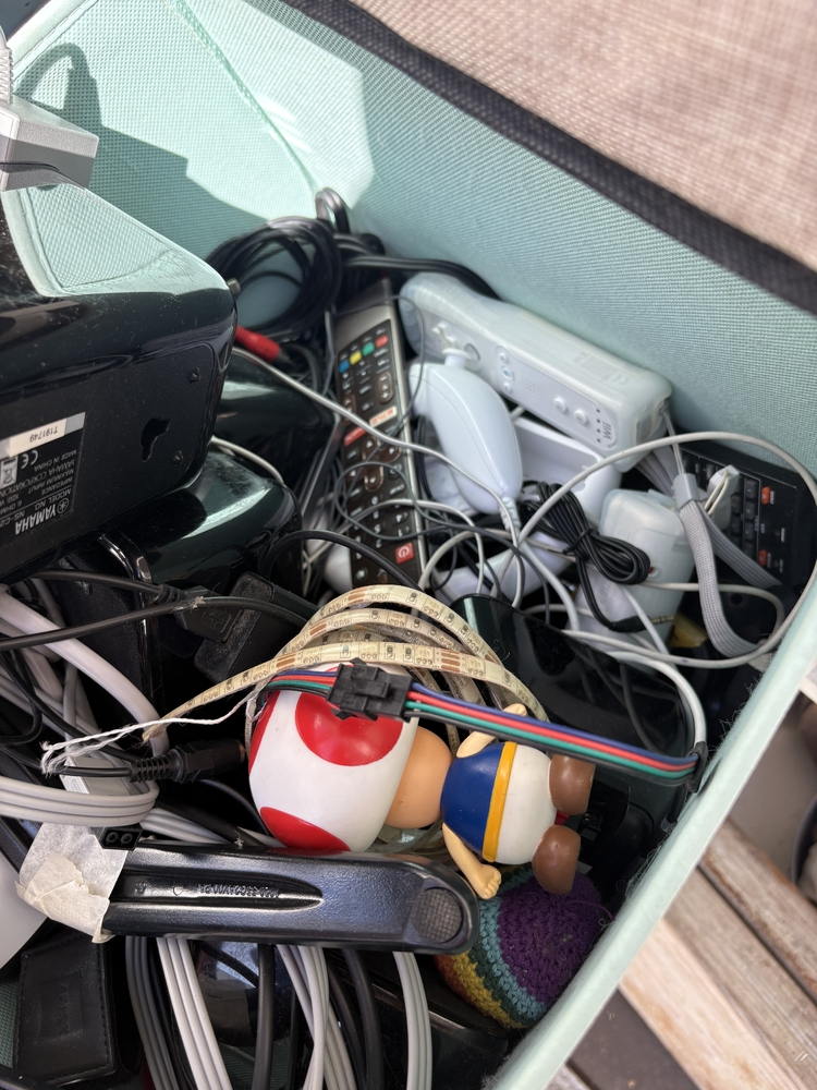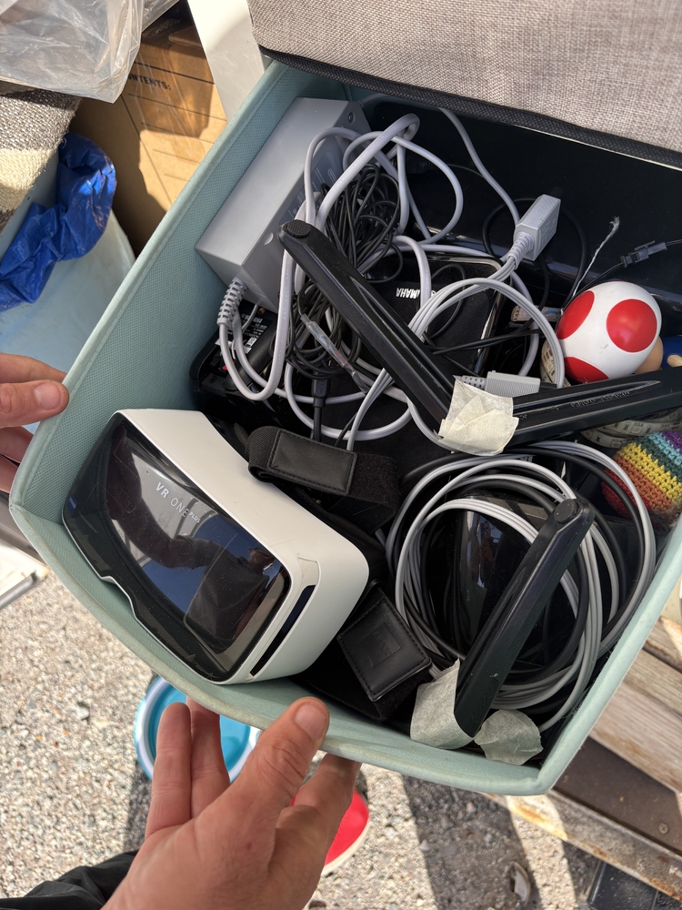 Unit is full to the brim, lots of tech stuff like VR head set, Wii controllers, lots of PS games.