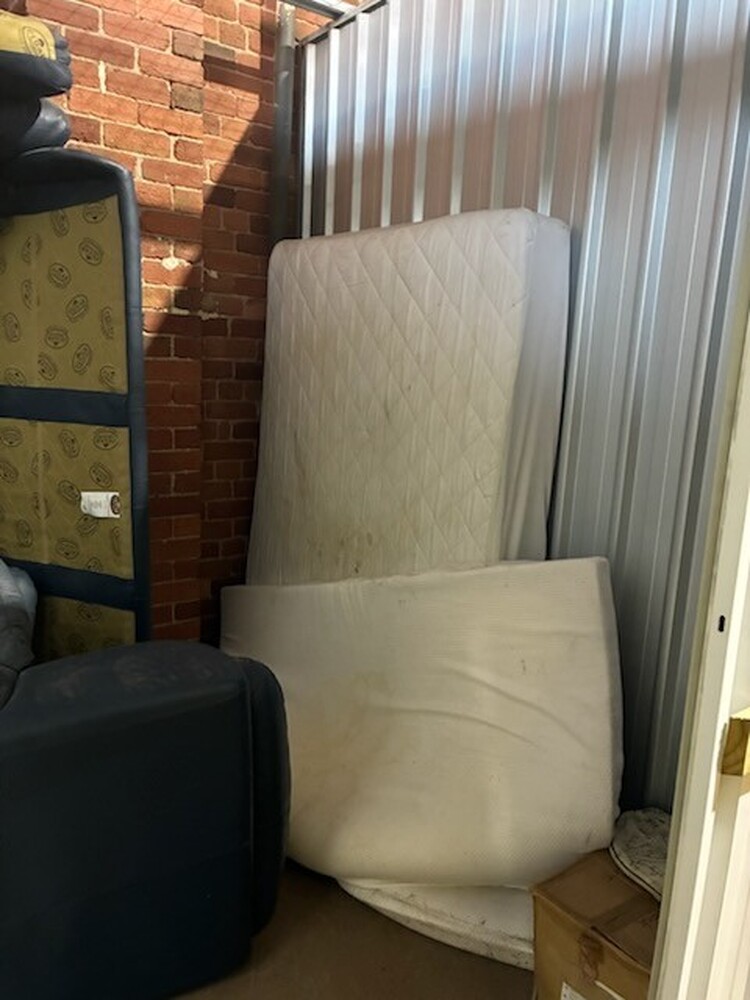 Couch, Mattress, a tennis racket with signatures all over the cover (unsure who they are) and a box of vinyl records (unsure if records inside each cover)