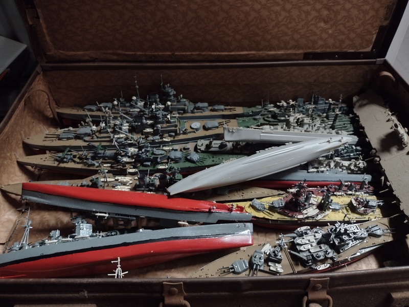 Old suitcase with 2 sections, (Pyramid Duplex Case) with model ships