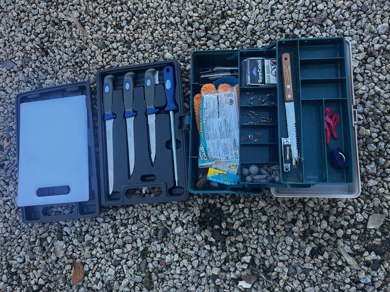 Fishing tackle box and knives