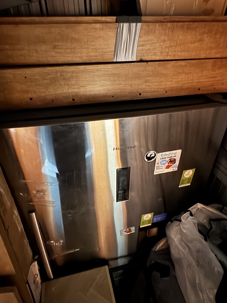 Tv, dining table and chairs, fridge, vacuum, trampoline, 2x mattresses and other bits and pieces.