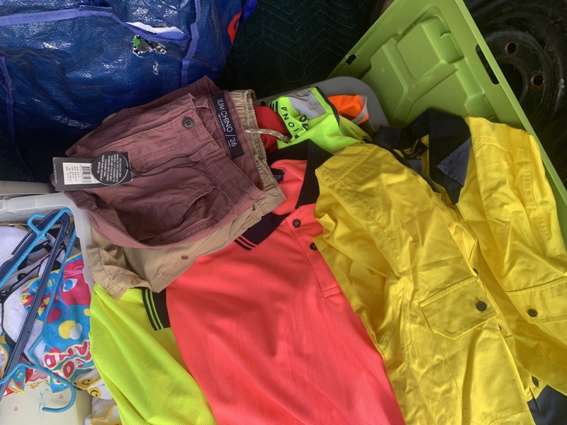 1x large tub of NEW work wear with some other clothes, different sizes and a variety of colours, micro mesh polo style