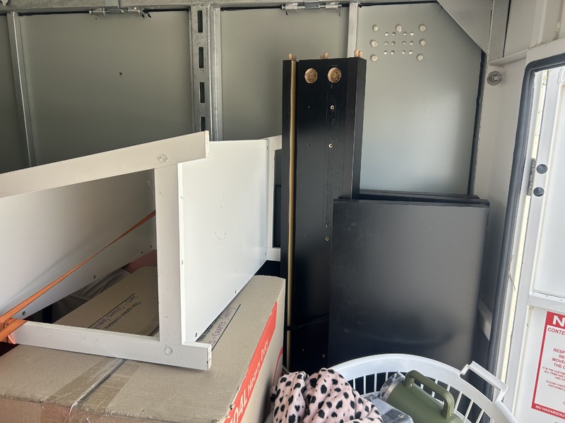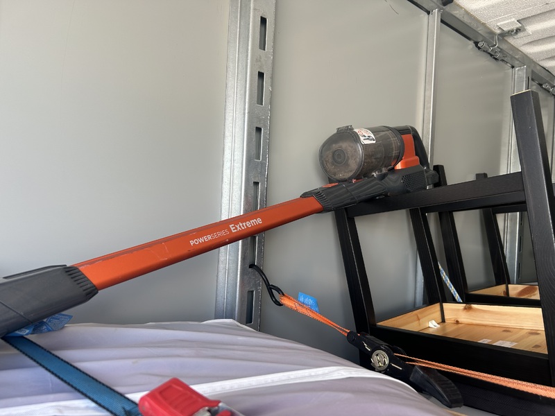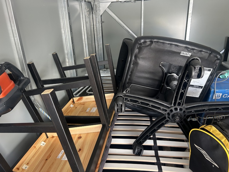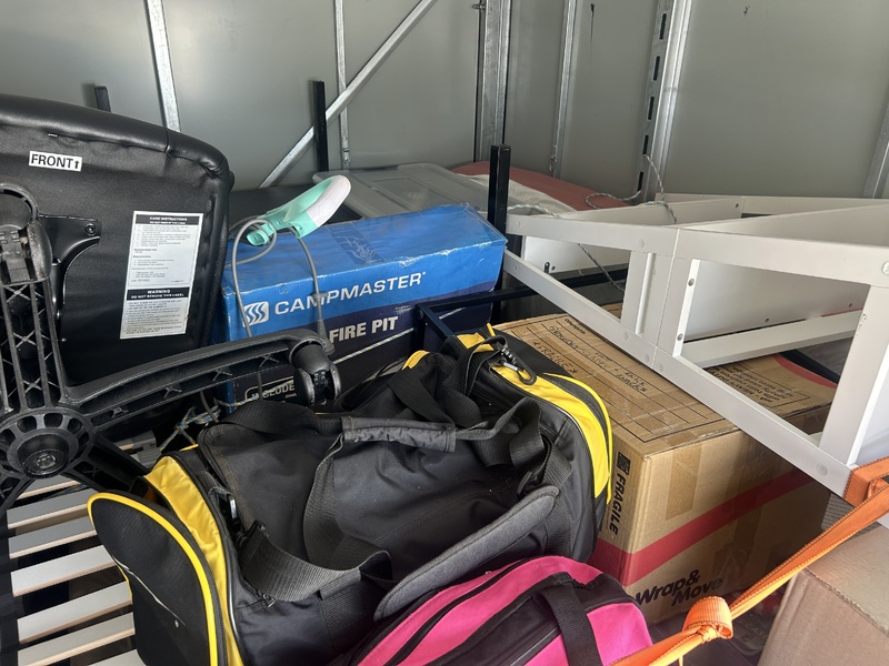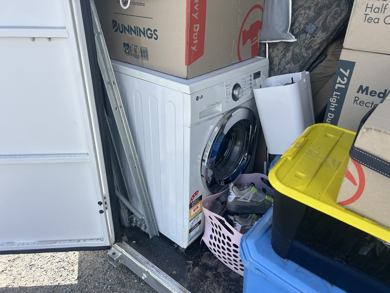 Almost a full unit, very clean and tidy stuff including LG washing machine, single bed and mattress, black & decker vacum cleaner, some camping gear, portable fire pit. Quite a bit of personal boxes with some tech stuff and kids toys.