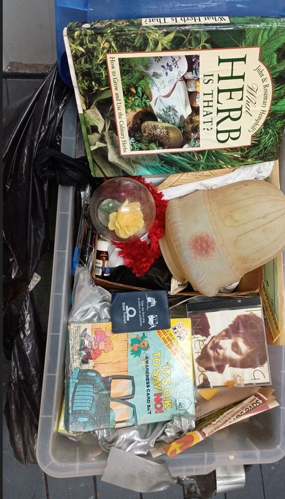 Various assortment of books throughout the boxes and tubs