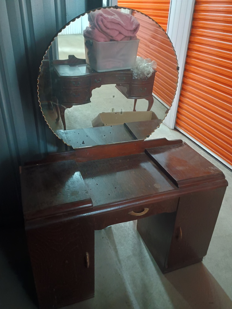 Timber dressing table with round mirror