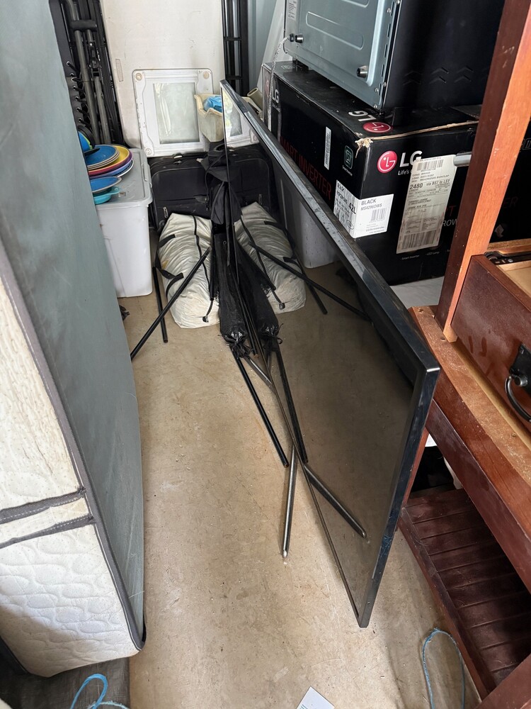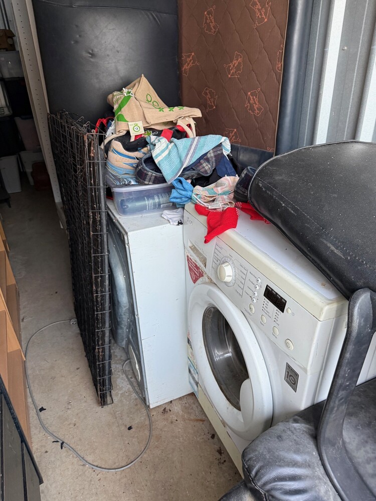 Westinghouse fridge, washing machine, dryer, TV, cupboards, shelves, drawers, mattresses, old vacuum, toe ball, various chairs, lounges, various kitchen items, bags, tubs etc.
