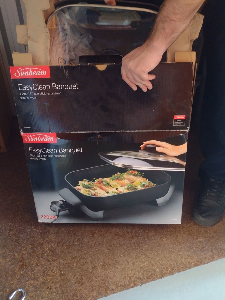 Repco Bike, Epson XP 2100 Scanner, George Foreman Grill, Wellness Dental Kit, Cushions, Electric Frypan, Box of Miscellaneous, Box of Clothing, Box of pots and pans, Box of clothes hangers, Bag of handbags, Box of books.