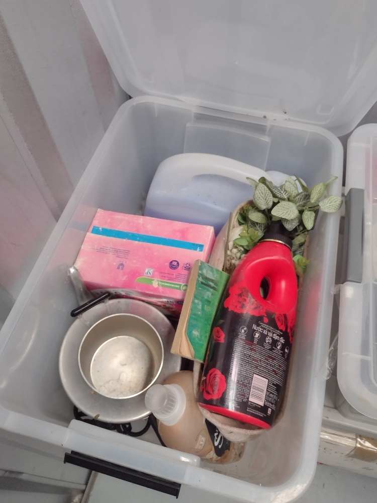 Plastic tubs of Clothing
