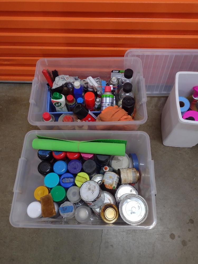 Tubs of spray paints