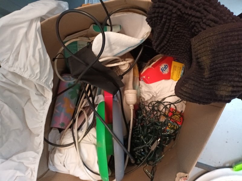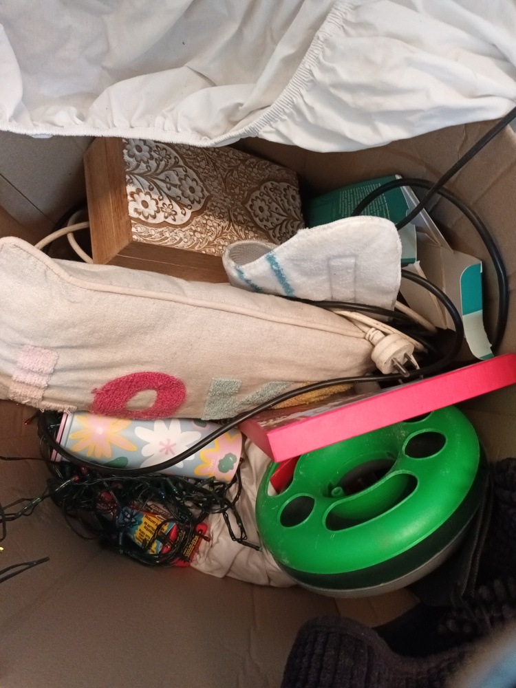Clock, Hall Table, Microwave, Linen, Power Cables, Place Mats, Christmas Lights, Pictures/ Picture Frame