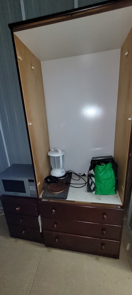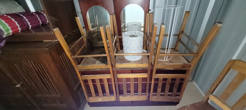 Wardrobe, Sandwich maker, Hotplates, Lantern, Microwave, Bedside, Dining chair x 4, Mirro doors x 2, Dressing table, Chiffonier, Coffee table x 2, Car seat, Bar stool x 2, Kids BMX, Assorted clothing & Assorted manchester.