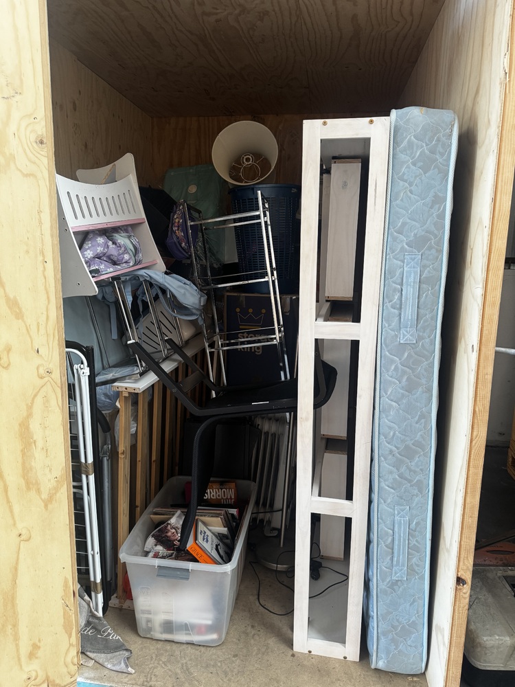 Mattress, bed frame , Many Boxes , books jewellery, radiators, step ladders