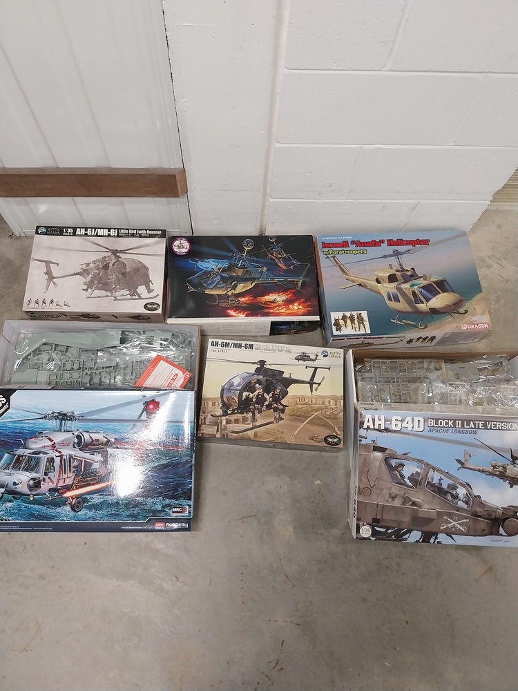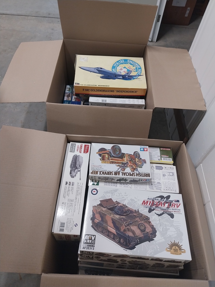 This unit has 13 boxes which all appear to have complete model kits inside, these include model Tanks, Airplanes, Helicopters and Ships..
