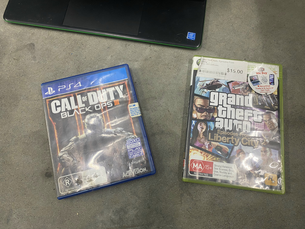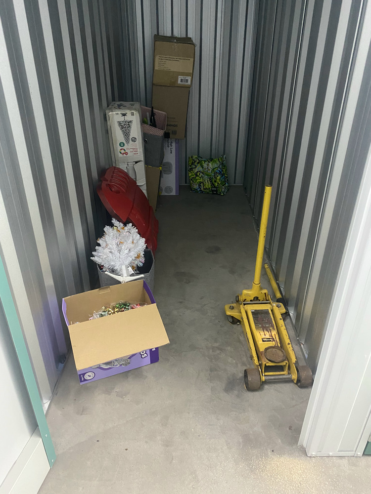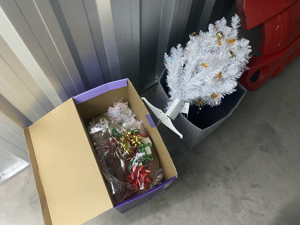 Laptop, Welding Unit and Helmet, Large Christmas Tree, Small Christmas Tree, Box of Christmas Decorations, V8 Engine Cover, Car Jack, Anko Highchair – Seems to be NIB, 6 Stiffed Toys, Box of loose items, Headphones, Watch, Xbox Games, Playstation Game, Box of loose items, Power Lead, Hair Dryer, Tape, Tape Measure, Container of loose coins, Batteries, Shoes