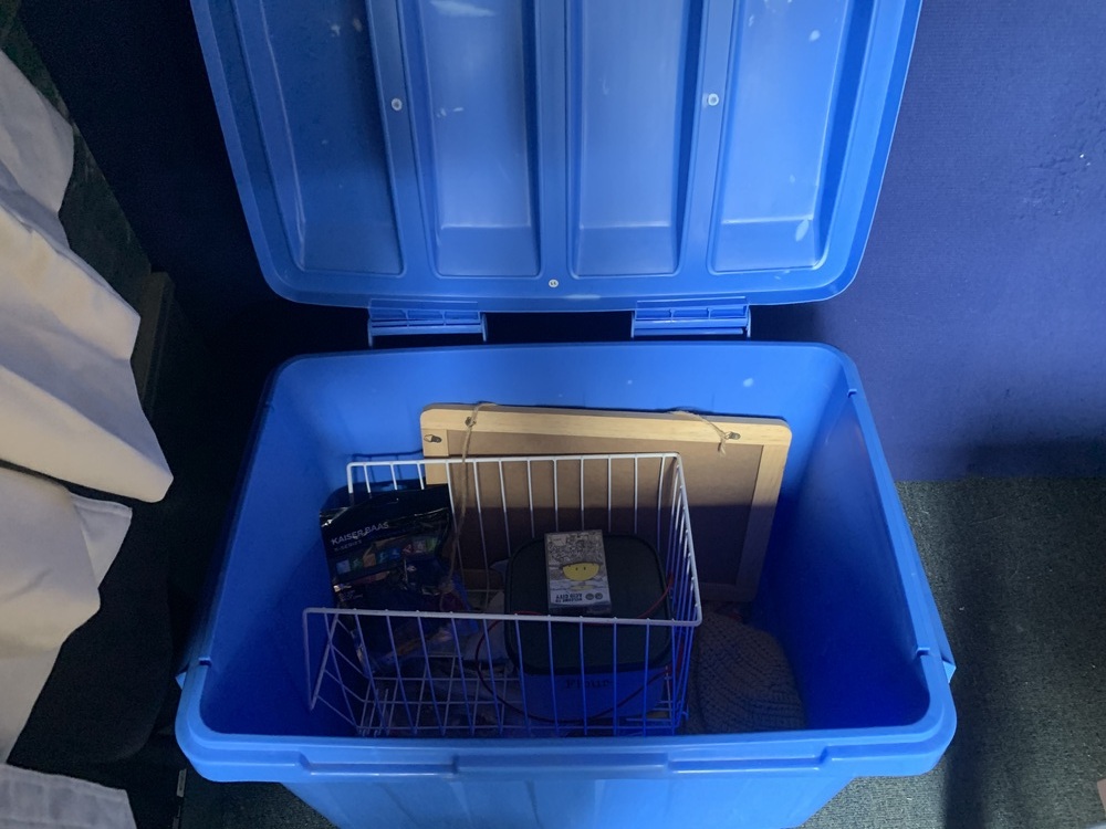 NOTE: truck box contents are up to blue partitions only, approximately half a truck box full.