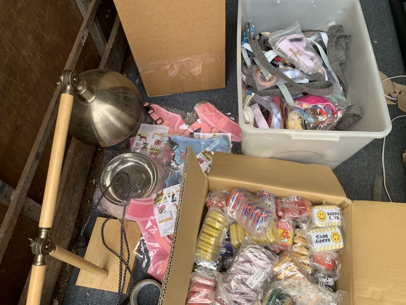 1x tub full of NEW dog products including harnesses, leads, collars and collar and bow tie combos