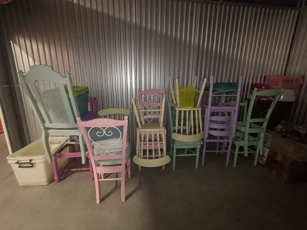 Multiple wooden chairs
