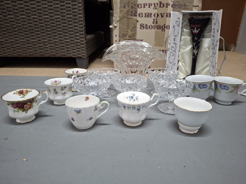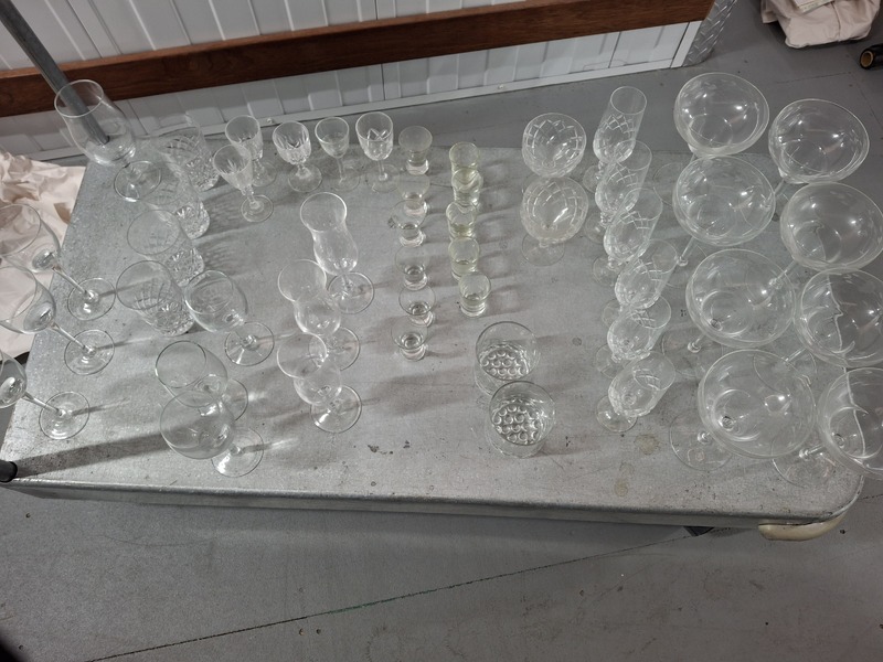 Household items, glassware, dinner set, furniture, boxes, DVD's/CD's/books/games.