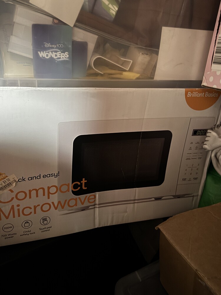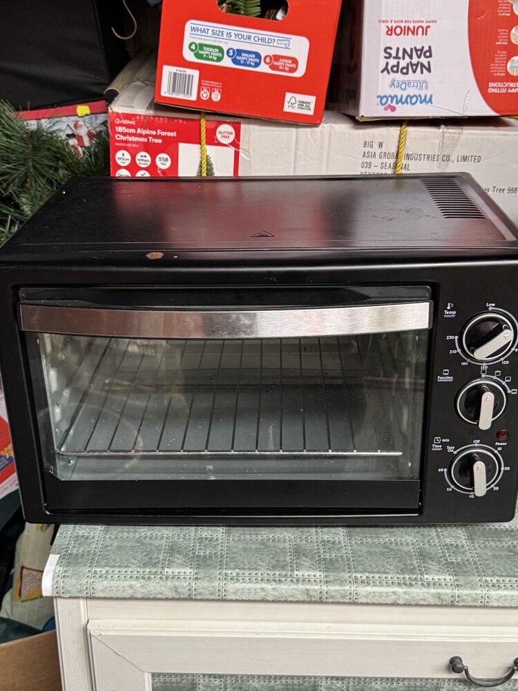 Lots of Christmas decoration, microwave, air fryer, small oven, clothes and lots of bits and pieces.