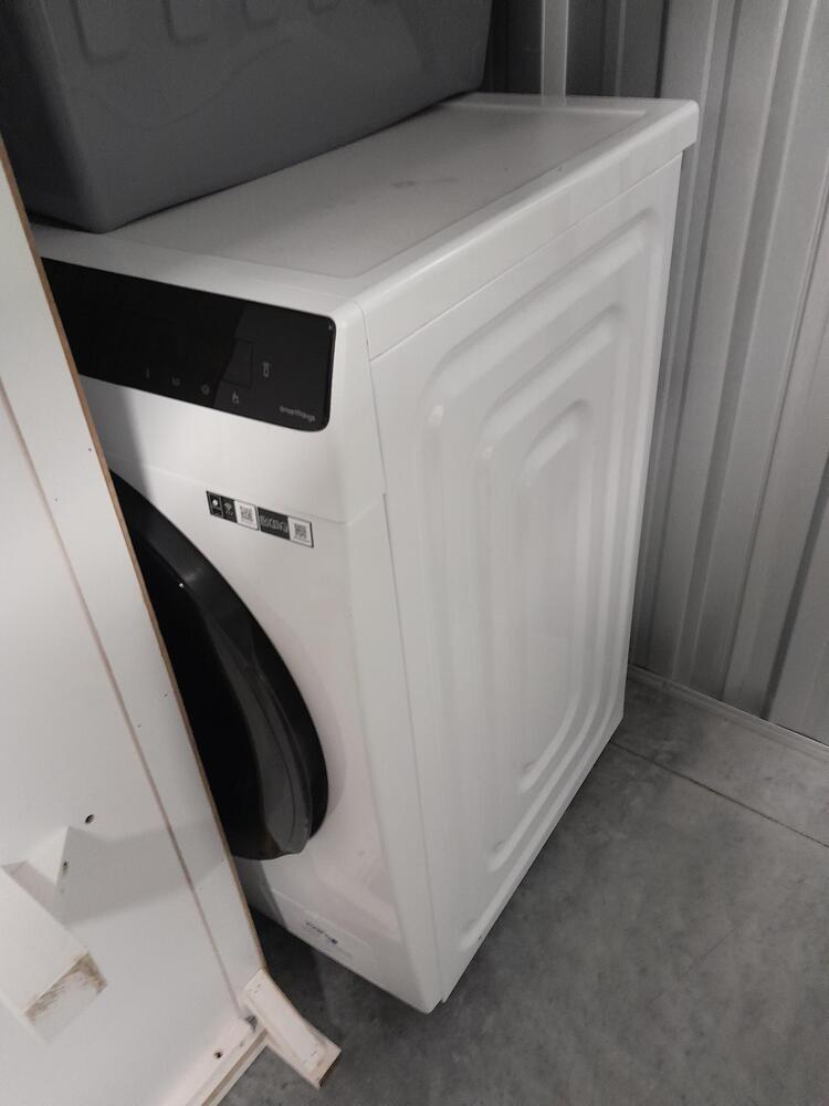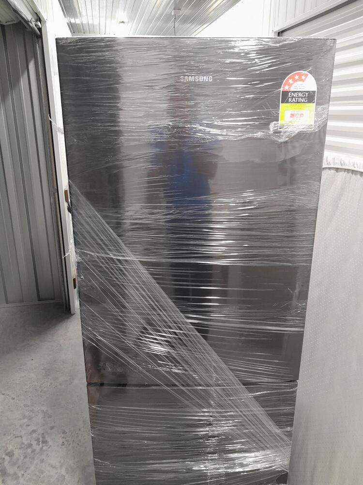 Washing machine, Modular sofa, boxes and tubs of miscellaneous, Samsung fridge freezer, double bed base and mattress, Dining table and 6 chairs. All in quite good condition