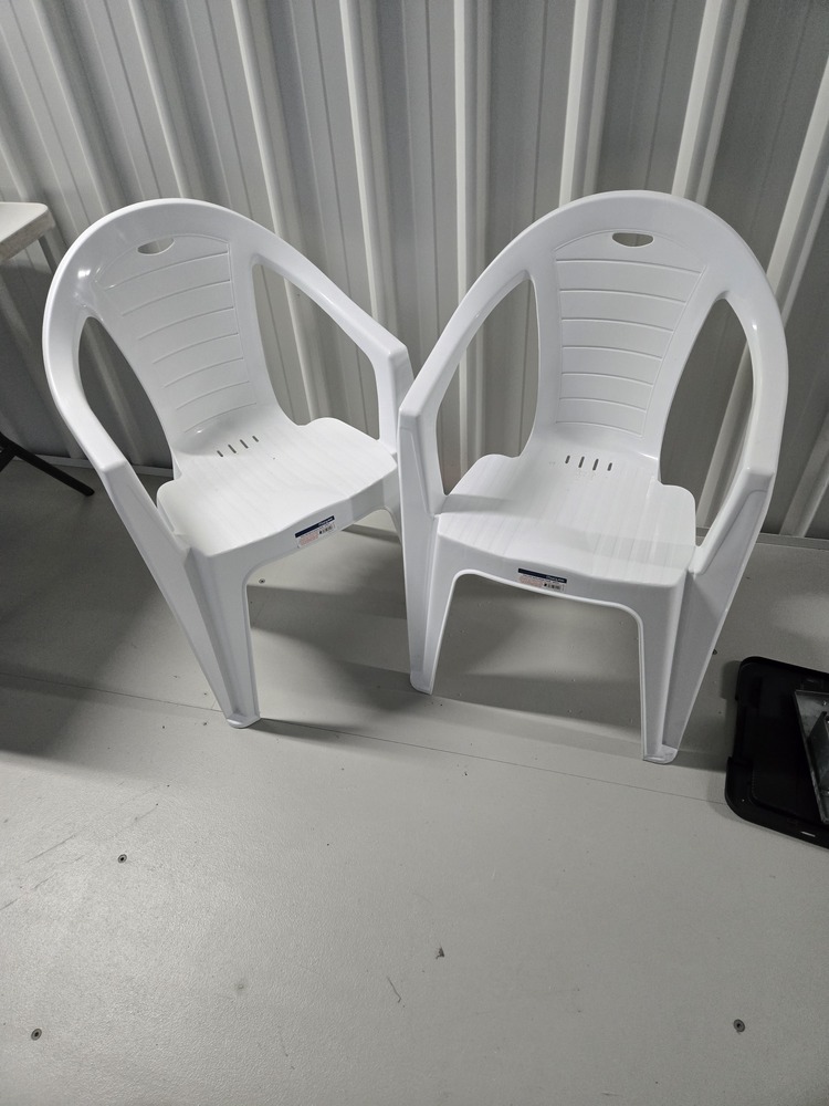 2 x plastic outdooe chairs Look BranD New.