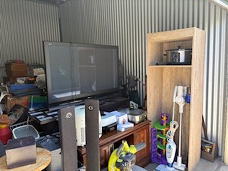Furniture items, bags, boxes, hand bags, garden tools, kitchen appliance's, toys, wobble board, lego, brand new work boots, and many more miscellaneous items.
