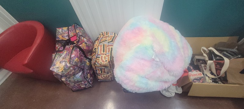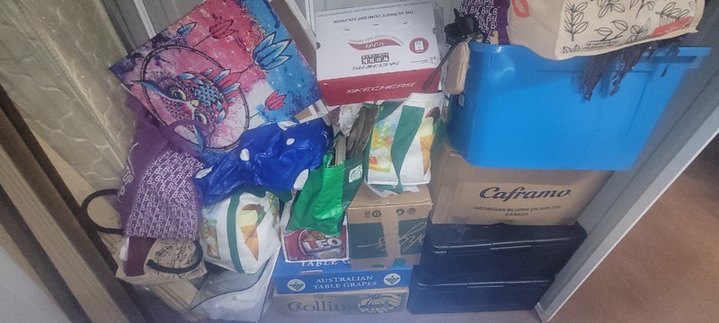 Assorted bags of clothing, shoes & manchester, Tub chair, Assorted books, Assorted DVD’s, China cabinet, Book stand, Assorted V8 Supercar memorabilia, Cnr china cabinet, Tent, Microwave, Shopping cart, Bedside x 2, Dressing table w/mirror, Washing machine, Mattress, Assorted artwork & unopened bags n boxes.